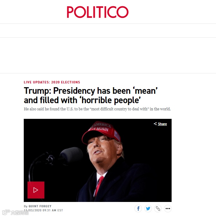 “政客”新闻网报道,特朗普:总统(经历)很“讨厌”,充满了“可怕的人”