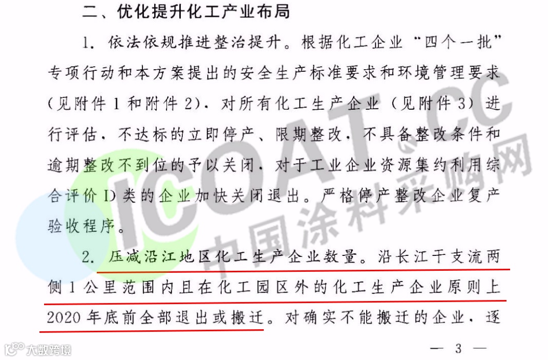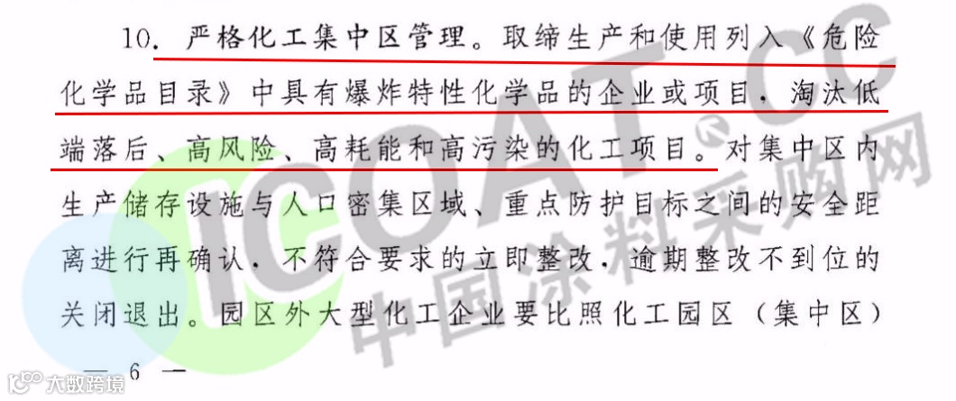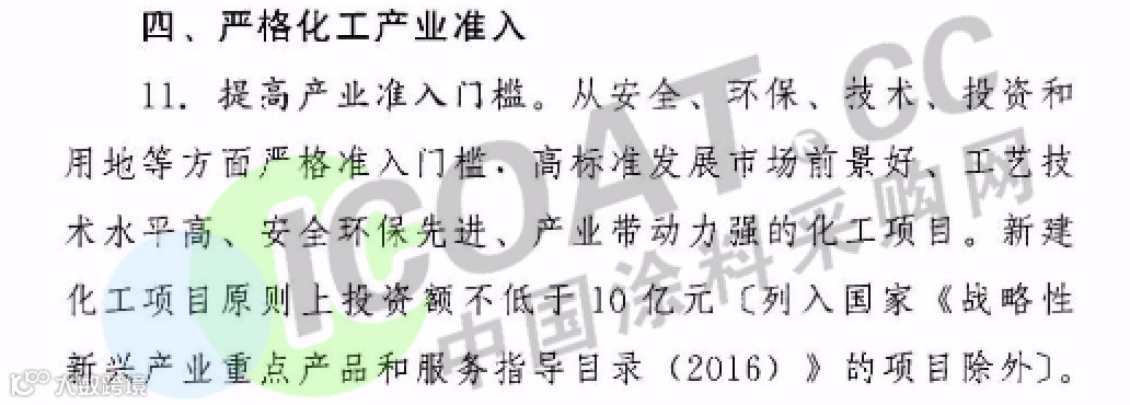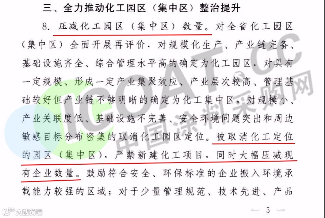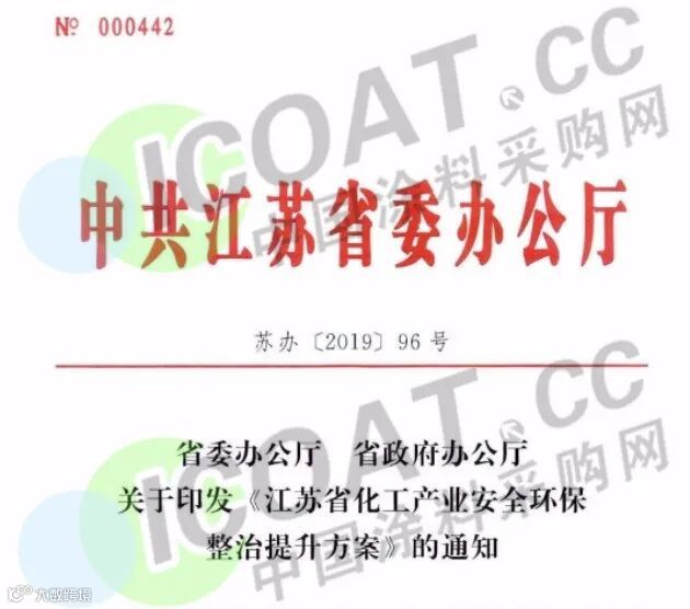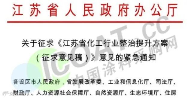 据涂料采购网了解,响水爆炸事故之后,江苏省人民政府办公厅2019年4月1日发布关于征求《江苏省化工行业整治提升方案(征求意见稿)》(以下简称“意见稿”)。对未来五年之内,江苏省化工企业、化工园区的改造升级及退出做出了明确指示。