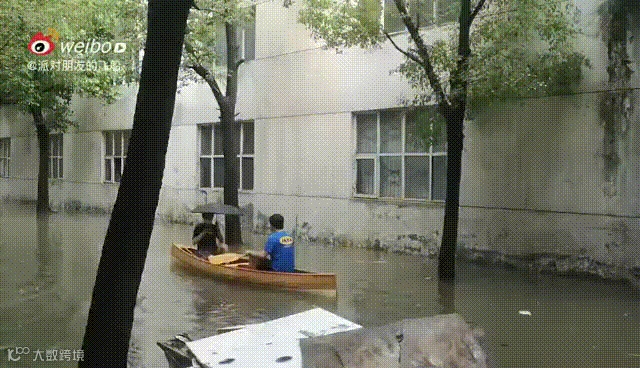 湖北宜昌市中南路附近的一工厂因暴雨厂区被淹,40余名工人被困,只见厂区内一片汪洋,十余辆小车被淹没至车顶,部分工人已经撤离到厂区高地,还有部分工人被困车间,在二楼窗口等待救援。消防救援人员一边调集橡皮艇准备营救被困车间的工人,一边在围墙边搭梯对已经撤离到高地的工人进行营救。