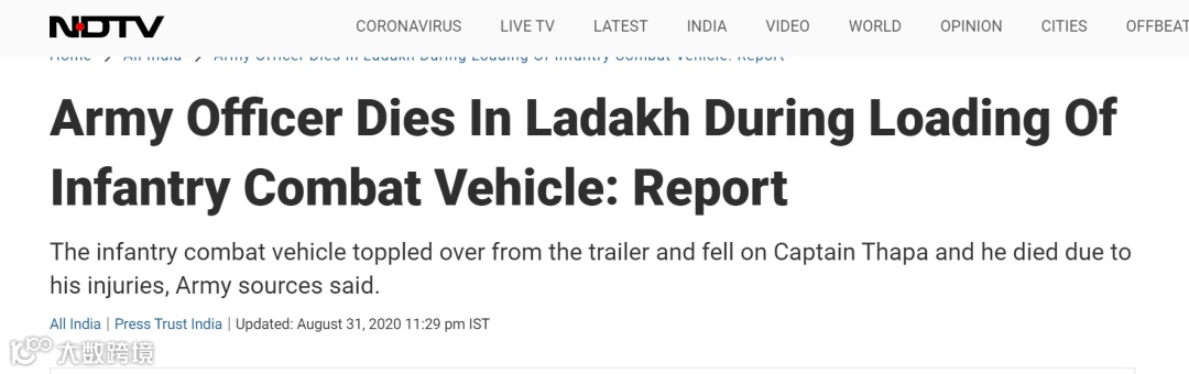 NDTV:在中印边境处装载步兵战车时,一陆军军官被砸身亡