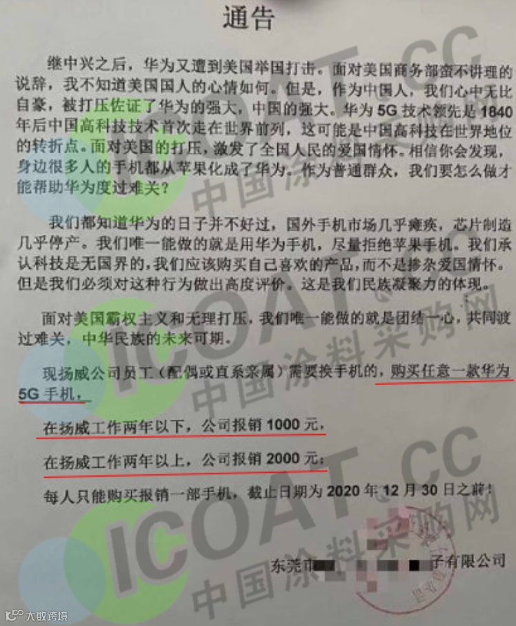 某企业发布通告,称继中兴之后,华为又遭到美国打击,为体现民族凝聚力,企业员工(配偶或直系亲属)需要换手机的,