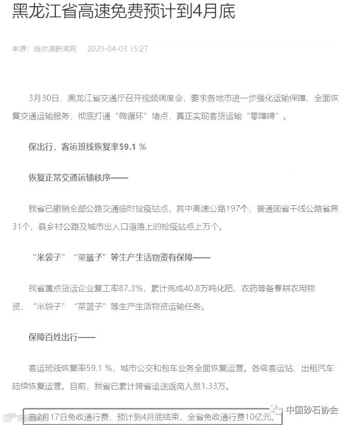 近日,黑龙江省交通厅召开视频调度会,会议要求进一步强化运输保障,全面恢复交通运输服务,同时也对黑龙江省高速公路恢复收费的时间节点给出了明确信息。