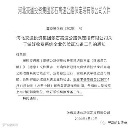 河北张家口4月11日进行高速收费测试!
