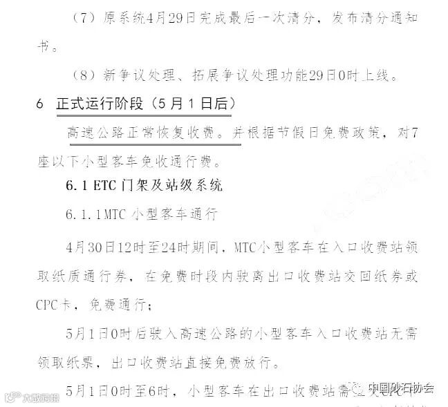 《关于高速恢复收费系统切换方案》的征求意见稿文中指出,高速可能5月1日后恢复正常收费。