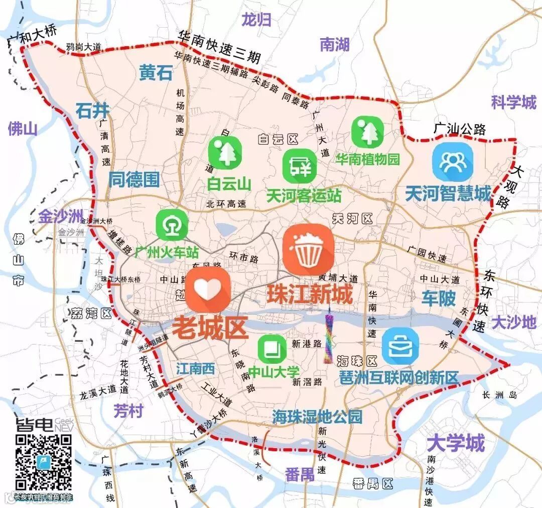 限行范围很大,边界长度约为100公里,限行面积约为600平方公里,把广州几乎所有主要功能区(教育、医疗、商贸、居住等)都囊括了,说是“全市限行”也不夸张。