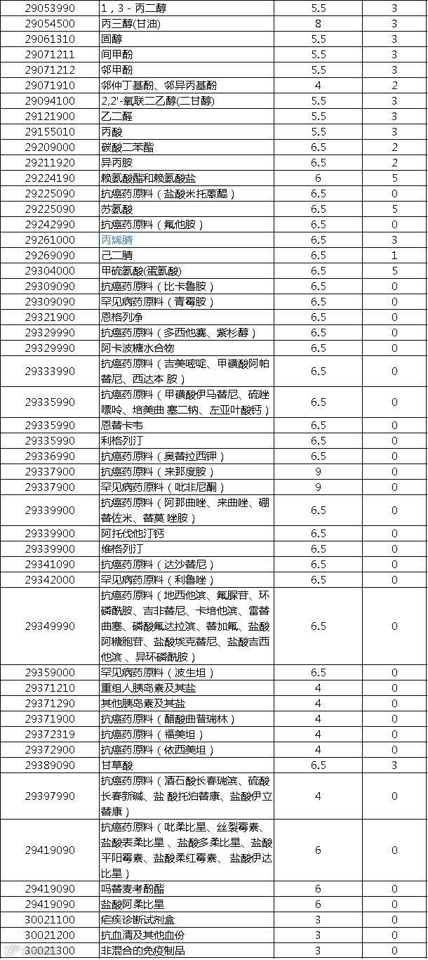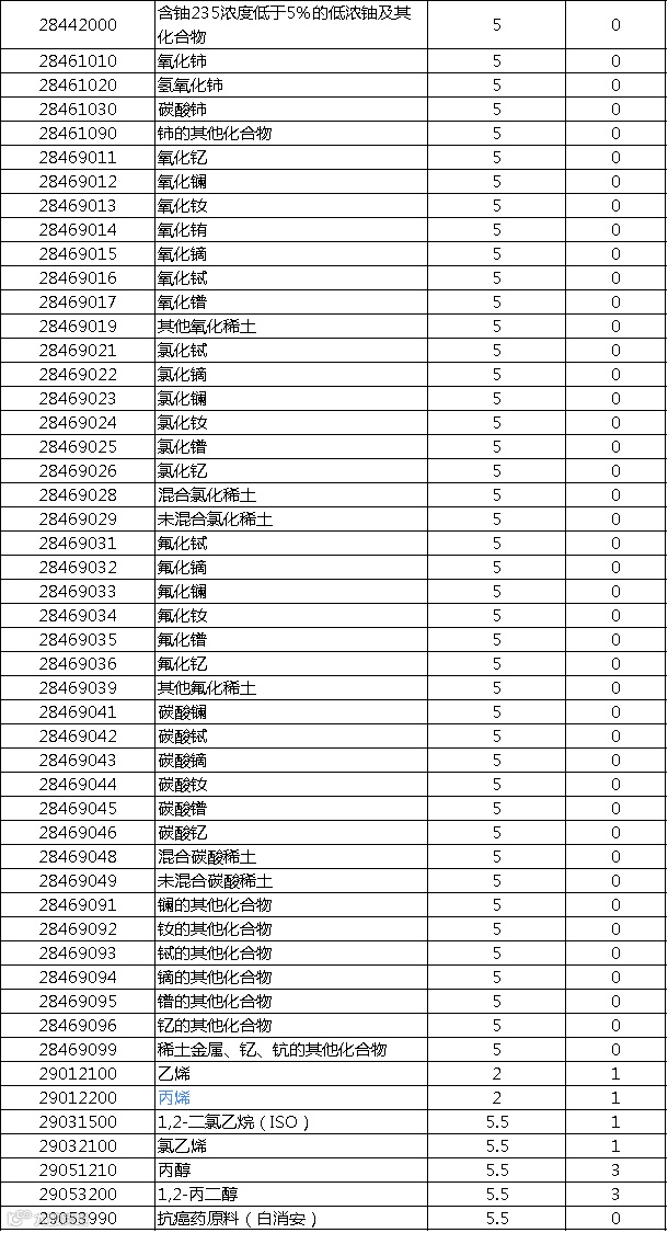 进口最惠国税率:自2020年1月1日起对859项商品(不含关税配额商品)实施进口暂定税率,其中包含200多项化工相关产品: