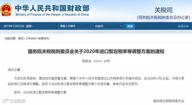 反观我国,早在2019年12月底,中华人民共和国财政部也发布了2020年进口暂定税率的调整方案,详情如下文。