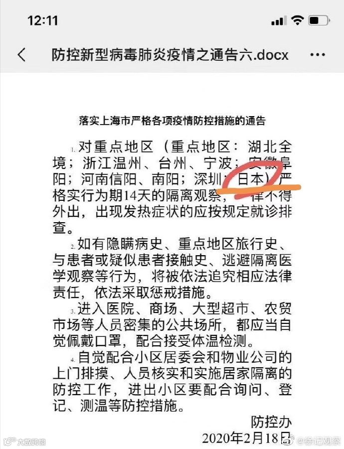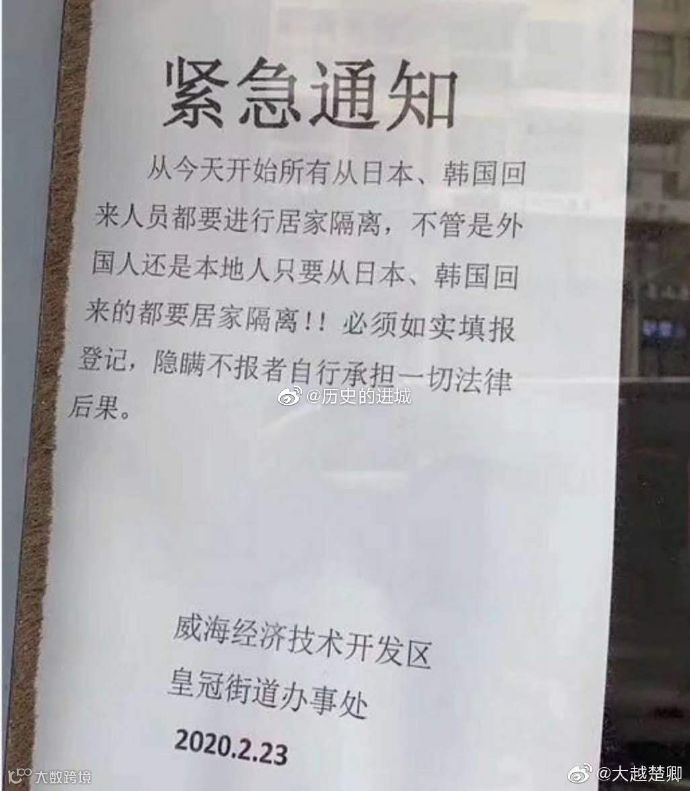 所有从日韩等国入境威海的人员、