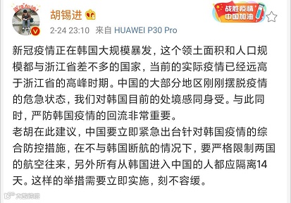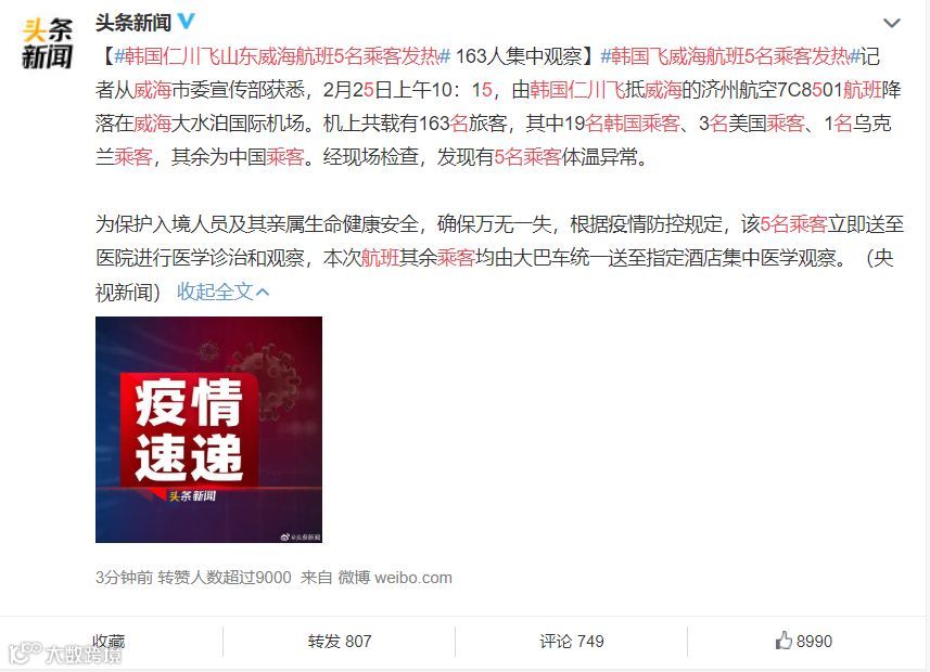 严防韩国疫情回流反扑中国。