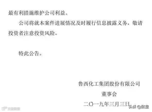 对于该仲裁结果,鲁西化工认为,仲裁过程中仲裁程序存在严重瑕疵,仲裁员存在严重的偏见,仲裁结果明显不公正。并将采取一切必要的法律措施,维护本公司及股东的合法权益,最大限度减少对公司的负面影响。