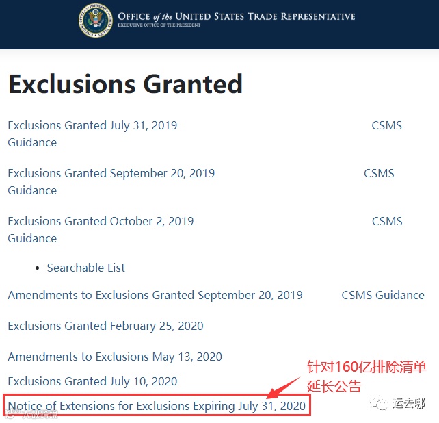 7月27日,美贸易代表办公室(USTR)又公布了针对160亿美元中国产品加征关税(List 2)于2019年7月31日第7批排除清单加征有效期延长公告;本次清单共涉及51个税号69项产品:其中55项产品恢复加征关税,14项产品获得有效期延长。