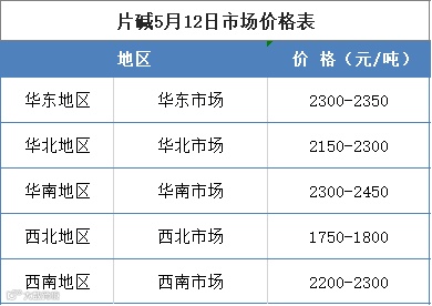 5月12日片碱最新报价如图: