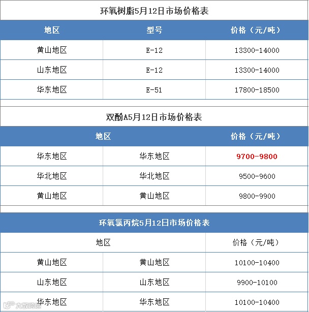 5月12日环氧树脂产业链最新报价如图: