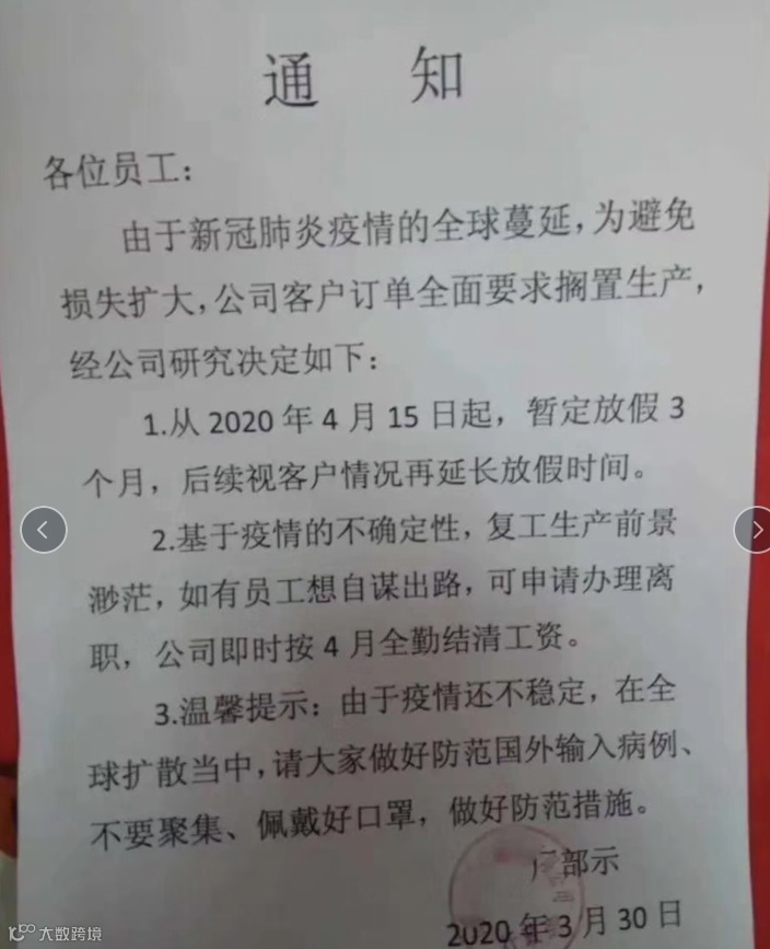 通知一出,老板哭了,员工也哭了!有员工说:做了10年,第一次被动失业,老家农村,过完年千辛万苦去了工厂,干了一个月,因为疫情,外贸订单没了,回来种地,地也包给人了。
