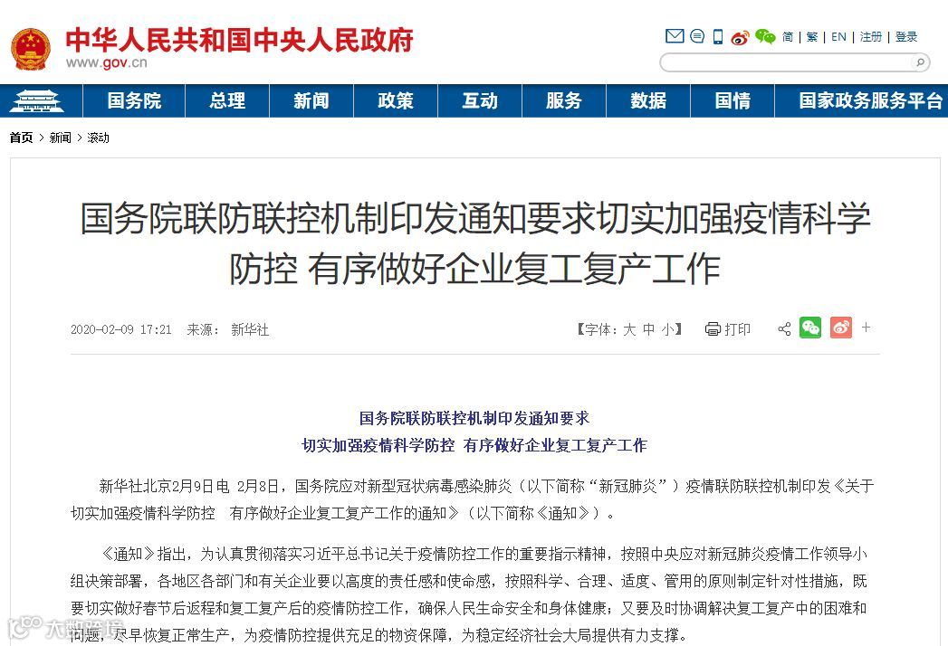 2月9日,在国务院联防联控机制召开新闻发布会上,国家发展改革委经贸司副司长陈达表示,目前,除了湖北省外,全国其他30个省份均已部署安排企业复工复产。