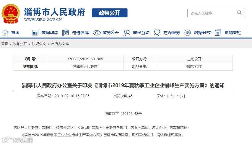 7月10日,淄博市政府办公室印发《淄博市2019年夏秋季工业企业错峰生产实施方案》的通知,宣布从7月份起开展为期3个月的夏秋季工业企业错峰生产,此次错峰生产实施范围为PVC手套、工业炉窑、玻璃(含日用玻璃)、有机化工、制药、石油化工、水泥(不含粉磨站)等,最高限产30%。