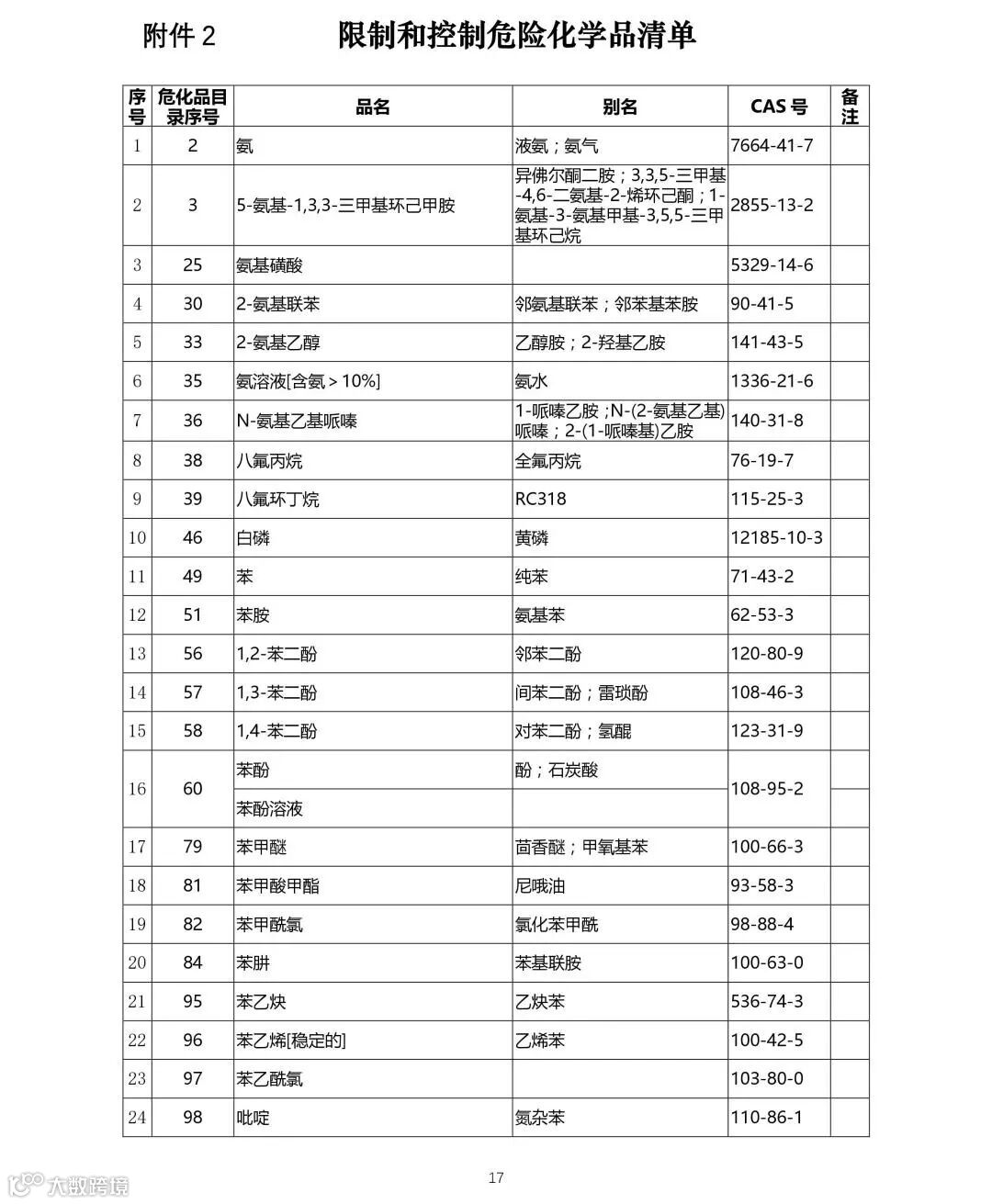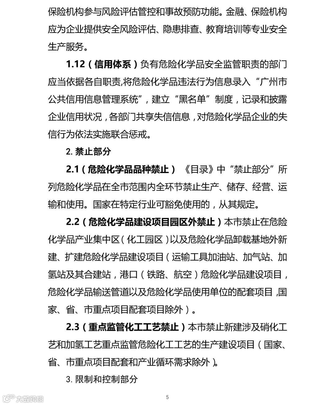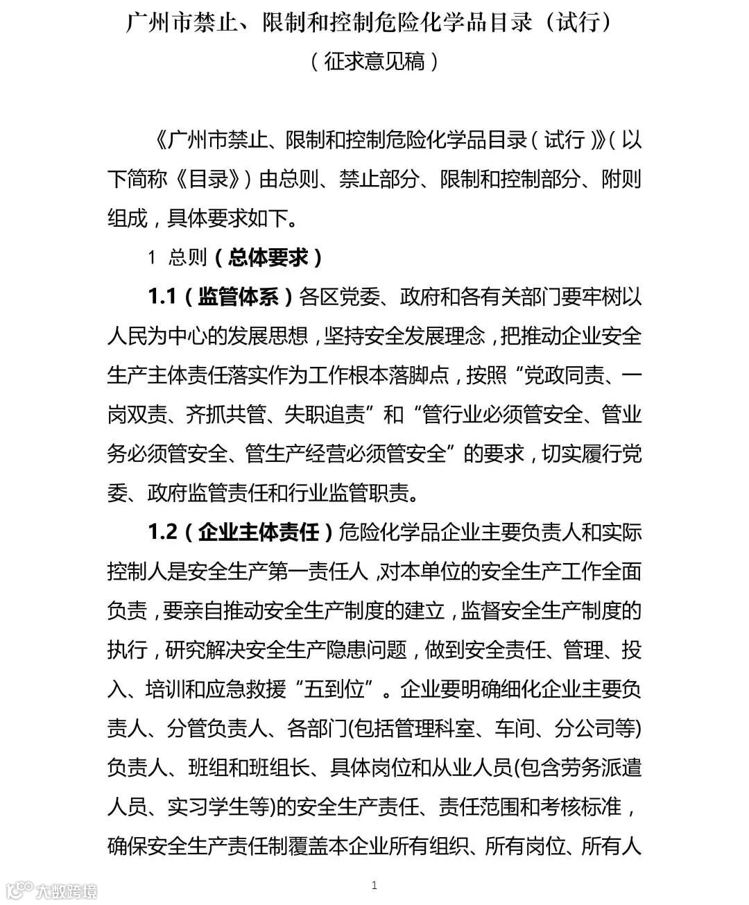 《广州市禁止、限制和控制危险化学品目录(试行)》(征求意见稿)