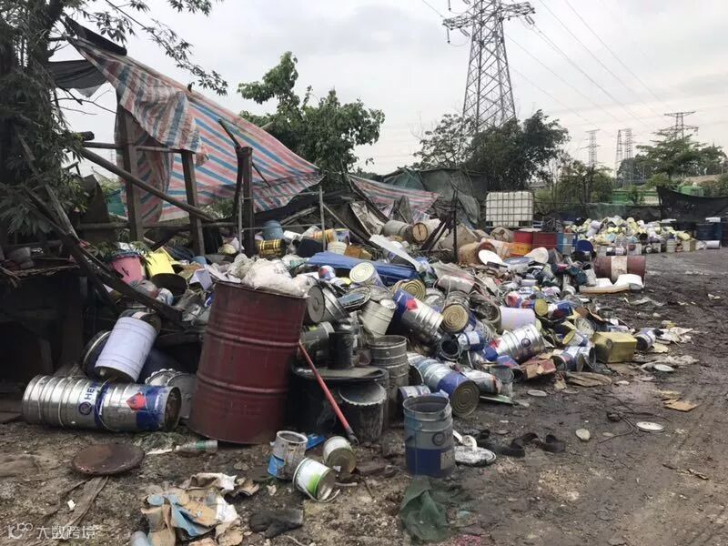 原来,5月1日,南海区狮山镇环保执法人员在上柏工业区进行安全检查时,发现该区域有一家无证照的油漆桶加工厂,该加工厂主要从事油漆桶拆解工作,存在环境污染问题。