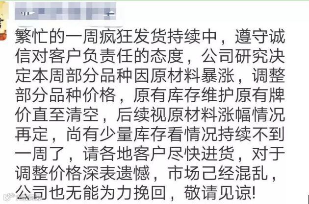 4月16日山东地区和华东地区环氧丙烷上调100元/吨,最新报价为10900-11200元/吨之间,山东金岭化工最新报价为10800元/吨。国内环氧乙烷市场主流参考报价位于8200-8900元/吨,其中吉林众鑫集团各个装置生产正常,环氧乙烷报价8600元/吨,聚羧酸减水剂单体价格ZX-306、ZX-504分别报10300元/吨、10500元/吨。各种原材料涨价、甚至局部出现供不应求现象,已经影响到下游企业的正常生产,望各企业做好提前备货的准备。