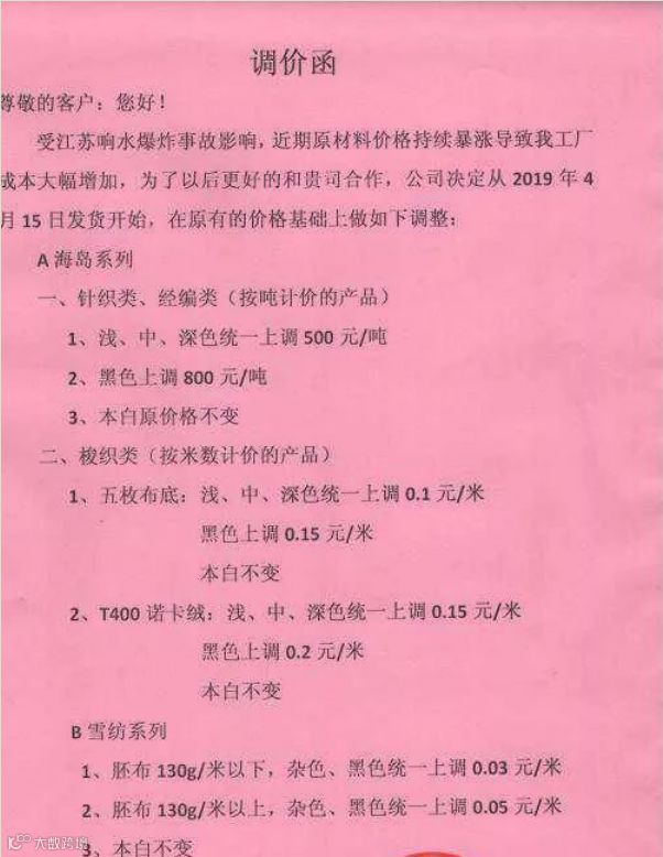 据了解,由于响水工业园区事件,亚邦蒽醌产品目前已经停产,不对外报价,严重缺货,国内部分染料中间体厂家除了青海、湖北地区少部分工厂开工以外,之江、吉华、安诺其等皆已停产。