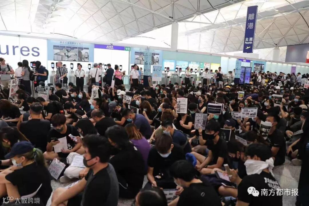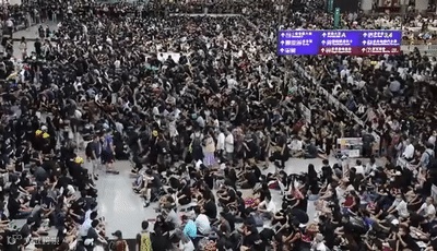 8月12日中午开始,一些身穿黑衣的青少年陆续进入香港国际机场进行非法集会,香港国际机场的接机大堂很快被示威者占据。