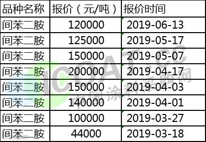 间苯二胺除了大量应用在分散染料(分散黑,分散红玉),还会用在活性染料几个大品种里面,比如活性黑,活性黄。曾因“响水3.21”爆炸事故发生之后,间苯二胺的价格从44000元/吨一度上涨至200000元/吨左右,但是随着市场需求的持续疲软,间苯二胺的价格也失去了持续在高位运行的动力。据相关数据显示,目前国内的间苯二胺的价格大约在120000元/吨左右,较4月17日的200000元/吨相比,下滑40%。