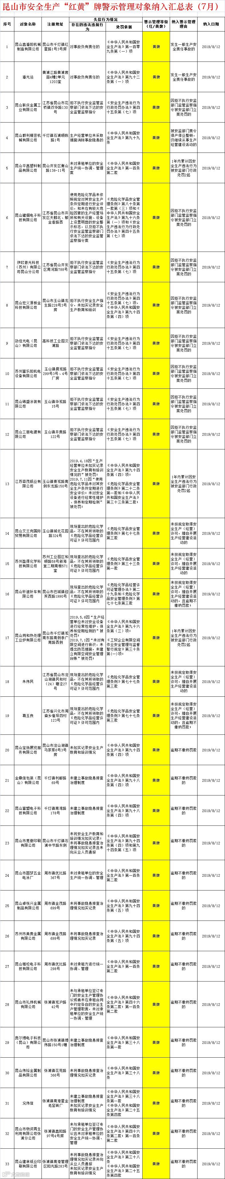 其中33家被罚企业遭到安全生产“黄牌”警示,