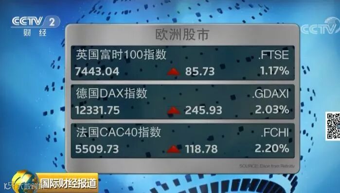 昨晚,欧美股市场大涨,道琼斯指数上涨1.35%,纳斯达克指数大涨1.39%;英国富时指数上升1.17%,德国DAX指数、法国CAC指数涨幅都超2%。