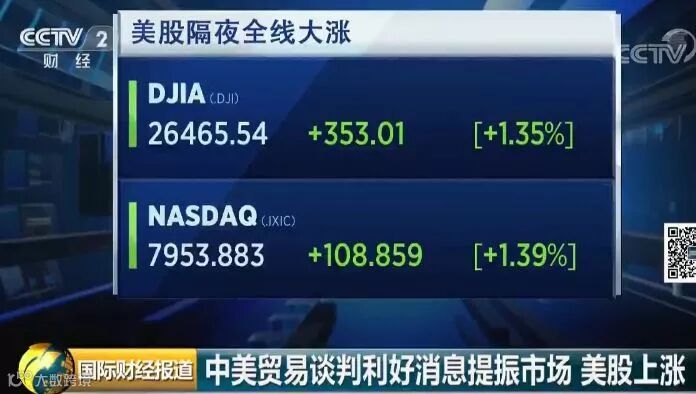 中美贸易谈判有望继续的消息,再加上美联储即将公布本月的会议纪要,使得金融市场信心受到提振,美股全线上扬。对此,CNBC财经评论员陈茜进行了分析。