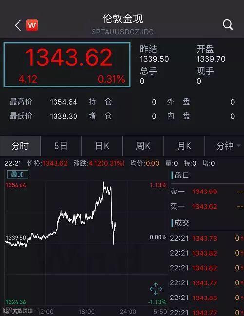 现货黄金短线快速下挫约10美元,至1343.62美元/盎司。