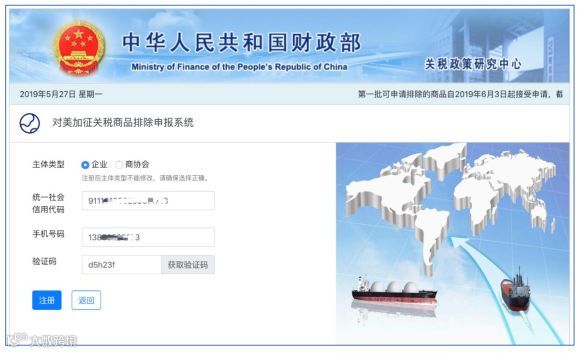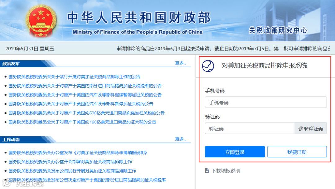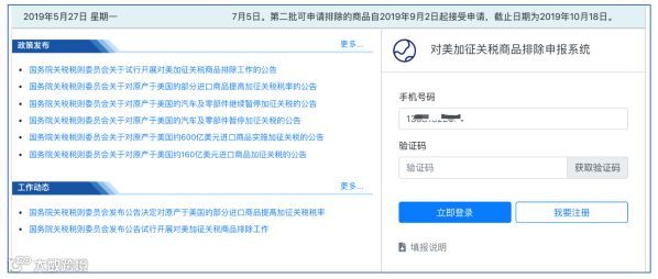 今天上午,财政部关税司发布“对美加征关税商品(第二批)排除申报系统于2019年8月28日开放”的公告,今天起,在华企业及协(商)会可通过财政部关税政策研究中心网站(https://gszx.mof.gov.cn)注册、登录,并开始填写排除申请。9月2日,排除申报系统正式接受第二批商品排除申请。