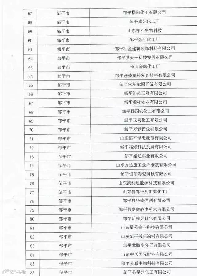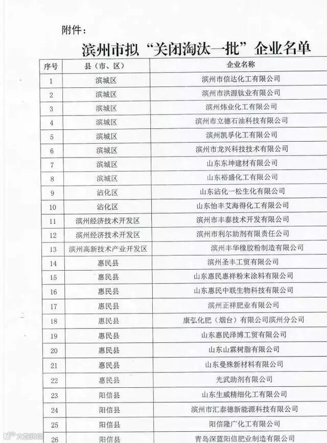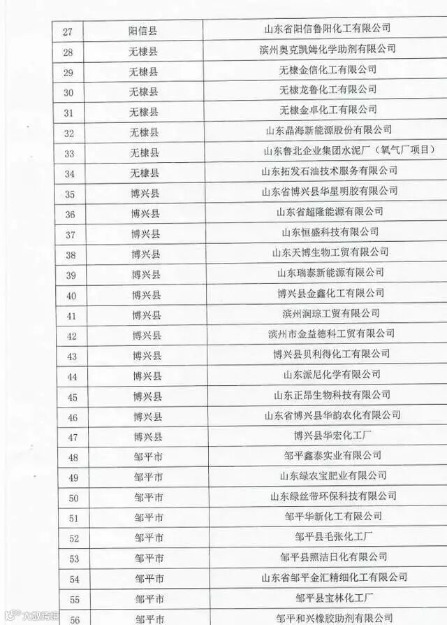 滨州拟“关闭淘汰一批”(第一批)化工生产企业名单(95家)