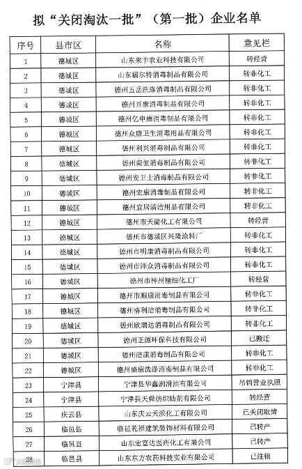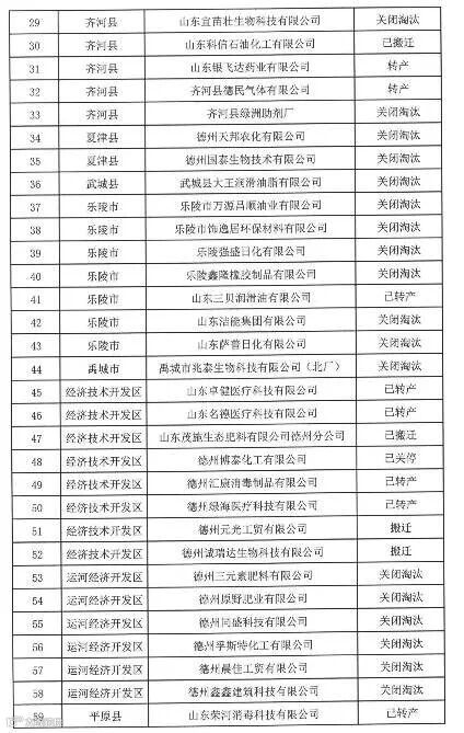 德州拟“关闭淘汰一批”(第一批)化工生产企业名单(64家)