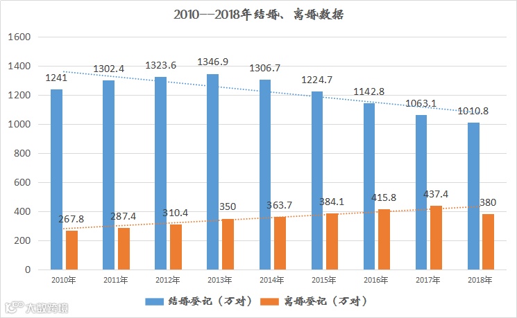 毫不意外,2018年的结婚人数再度下降