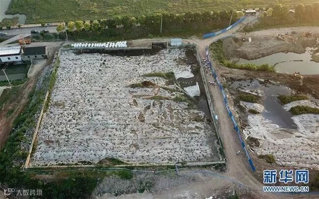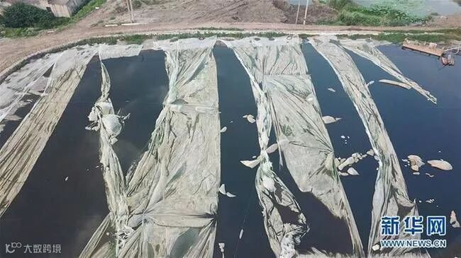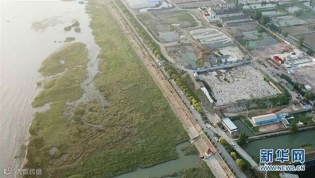 紧靠长江岸边的污泥堆积池