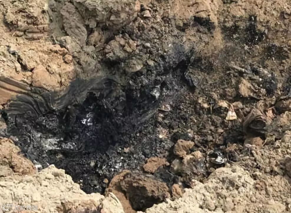 倾倒废料后土地呈现为黑色