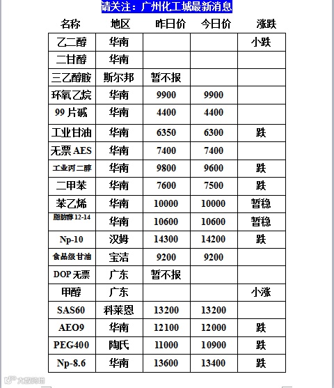 苯酚跌!甲苯跌!白油跌!醋酸跌!