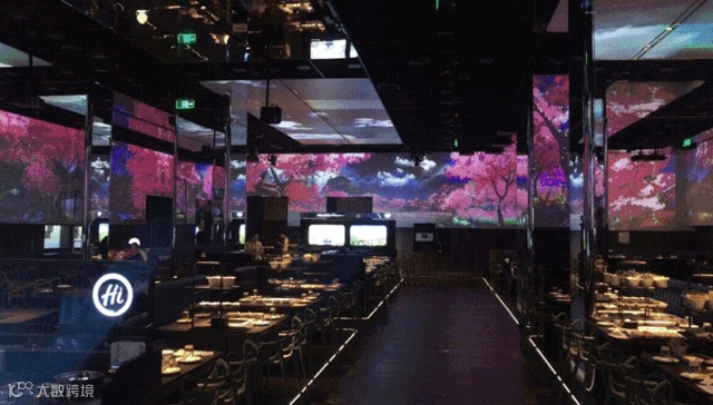 就连店里表演拉面和美甲擦鞋的服务员都不见了,取而代之的是360°全屋环绕式立体投影,5块超大穹顶屏幕。