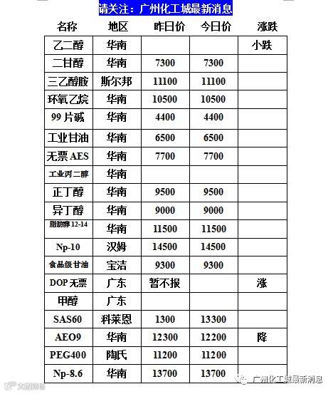 【化工行情】10月17日化工原料行情……