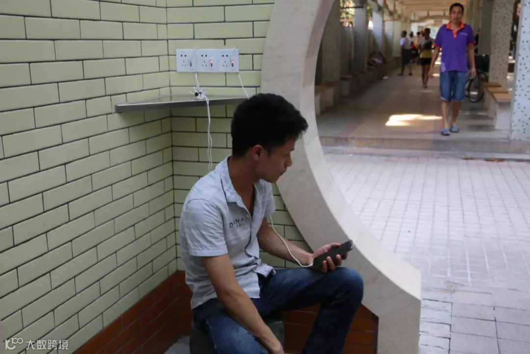 市民彭先生在车陂工作,趁休息间隙来如厕,顺便为手机充电。他表示没有闻到臭味,还能听听歌、叹叹空调,十分舒服。