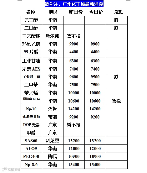 导读:提示:点击↑上方"广州化工城最新消息"关注我!月桂酸跌200元白油跌100元醋酸跌150元苯酚跌150元丙烯