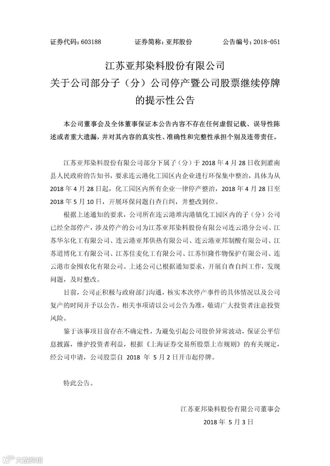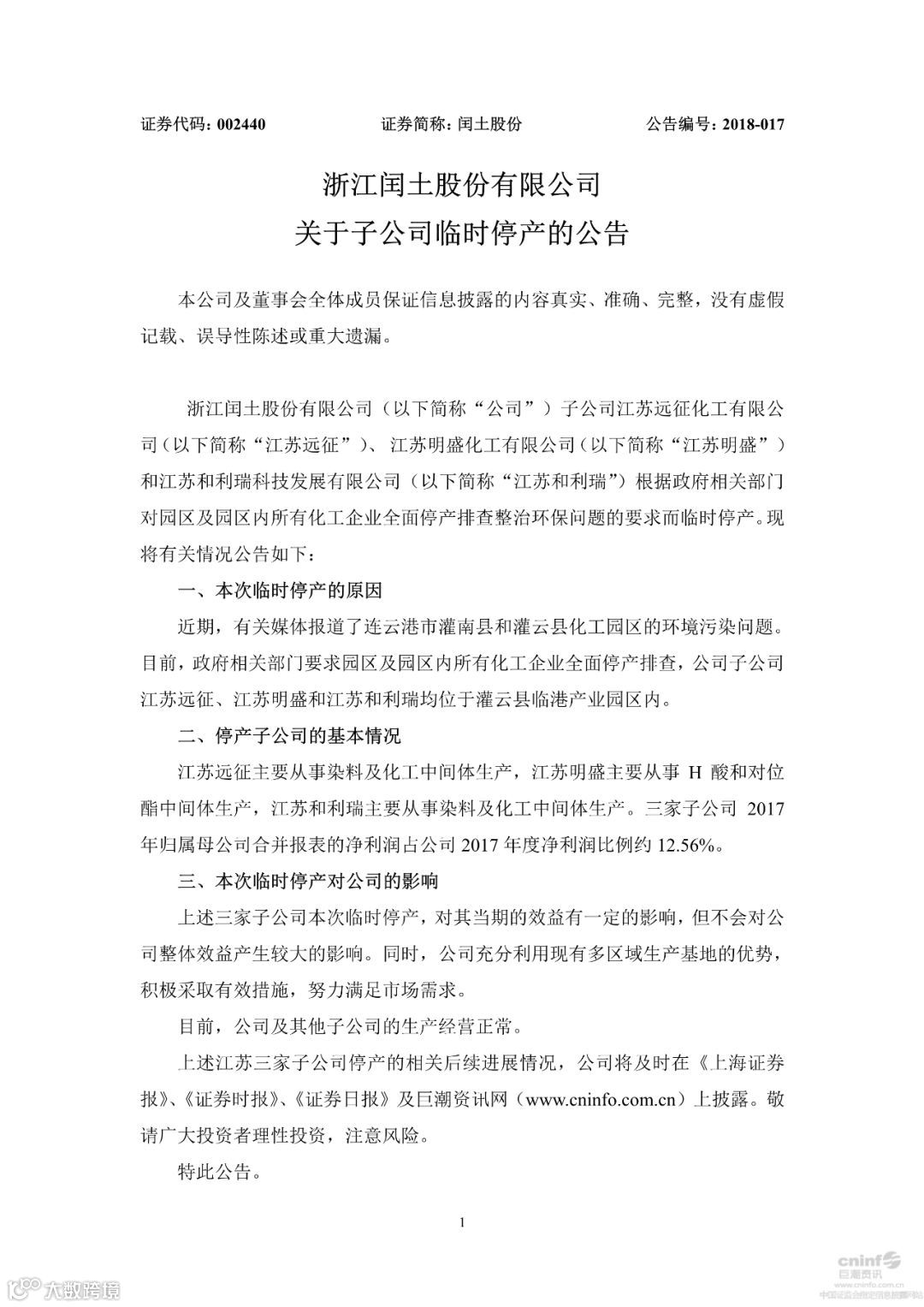 经央视报道后,连云港灌南、灌云、盐城响水三大化工园区,所有化工企业一律停产整治,其中有亚邦的8家子公司,闰土的3家子公司,江苏吴中的响水恒利达,连云港事件可谓“惨不忍睹”,在化工行业的影响不亚于“偷袭珍珠港”,造成很多化工原料中间体大面积停产无货,产品暂不报价的现象。