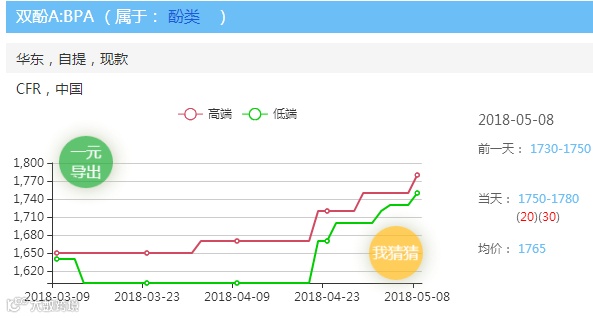 除受欧盟新规影响外,5月份双酚A厂家检修较为集中,目前山东利华益维远化工12万吨/年双酚A装置已停车检修。中石化三菱化学15万吨/年双酚A装置开工八成附近计划5月10日停车检修,维持30天左右。供应减少,目前场内低价货源难寻。