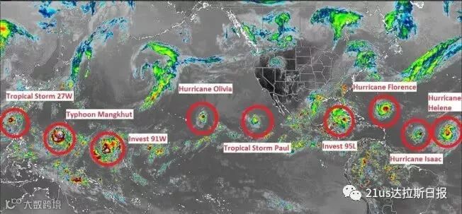 北半球9个台风、飓风