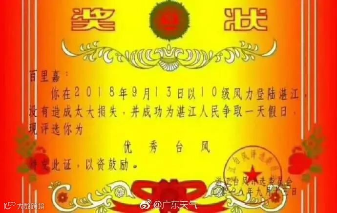 还被颁予了#优秀台风奖#