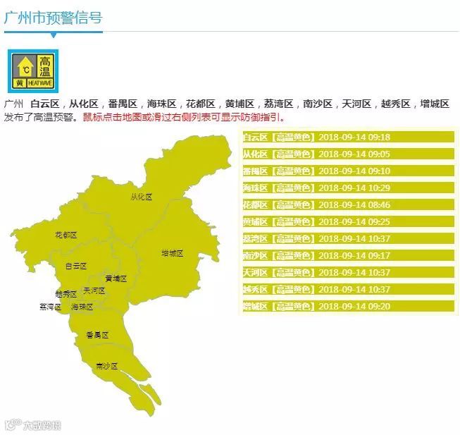 广州各区陆续挂起了高温黄色预警