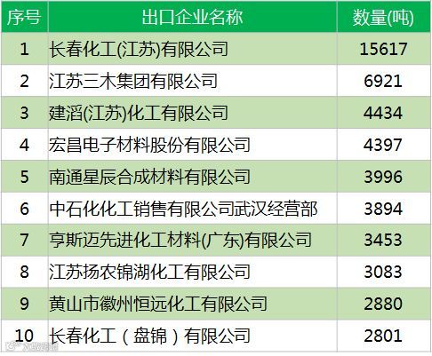 2017年中国环氧树脂出口前十的企业
