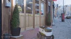 机器人到达商店,商家直接将外卖放到机器人内部。