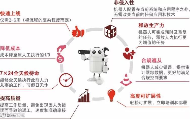 现如今,四大的智能机器人中心已经与多家企事业单位建立合作,提供财务自动化流程解决方案。机器人为财务部门的工作带来效率的提升,帮助财务人员完成大量重复规则化的工作。