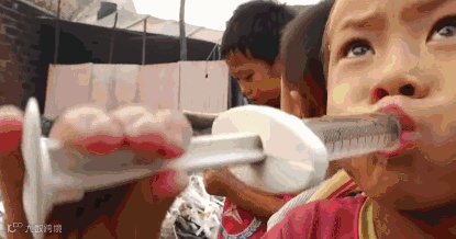 废弃的针筒成了他们有趣的玩具......